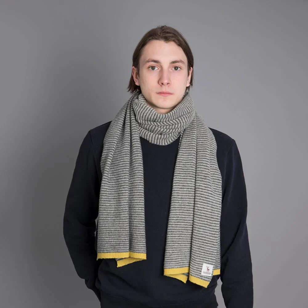 Lambswool Fine Stripe Scarf - Grey