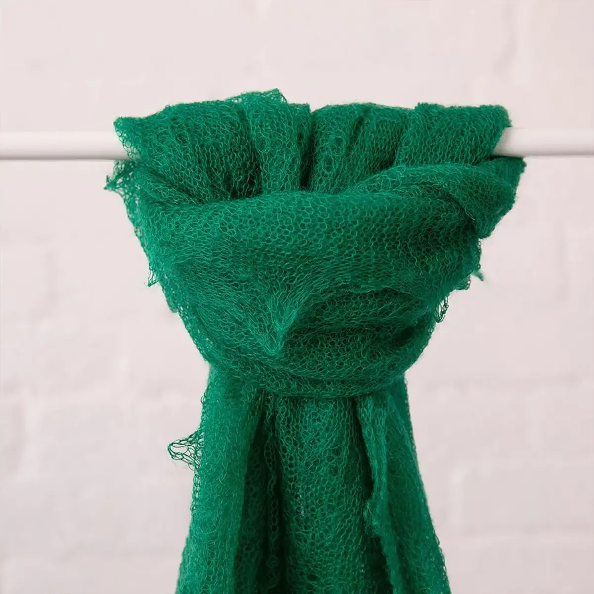Compliment your outfit with this striking emerald lace shawl. Knitted in fantastically fine 100% kid mohair. Size: 114 x 104cm