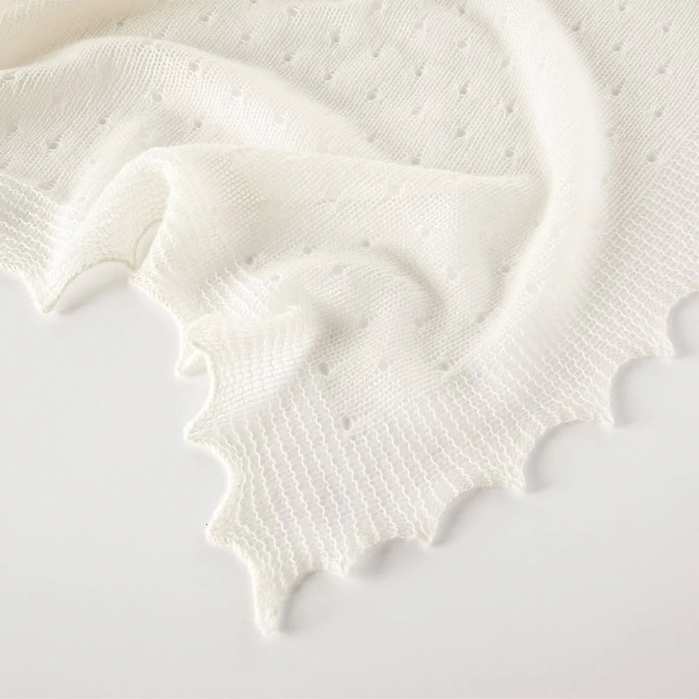 Incredibly soft 100% cashmere baby shawl, knitted in a delicate polka dot design with a beautiful scalloped edge detail. If you are looking for a wonderful present for a baby shower or special occasion, this warm and snug cashmere baby blanket is perfect for either a baby boy or girl. A treasured gift for every family's precious new arrival. Size: 94 x 88cm approx. Yarn: 100% Cashmere. Colour Soft Cream.