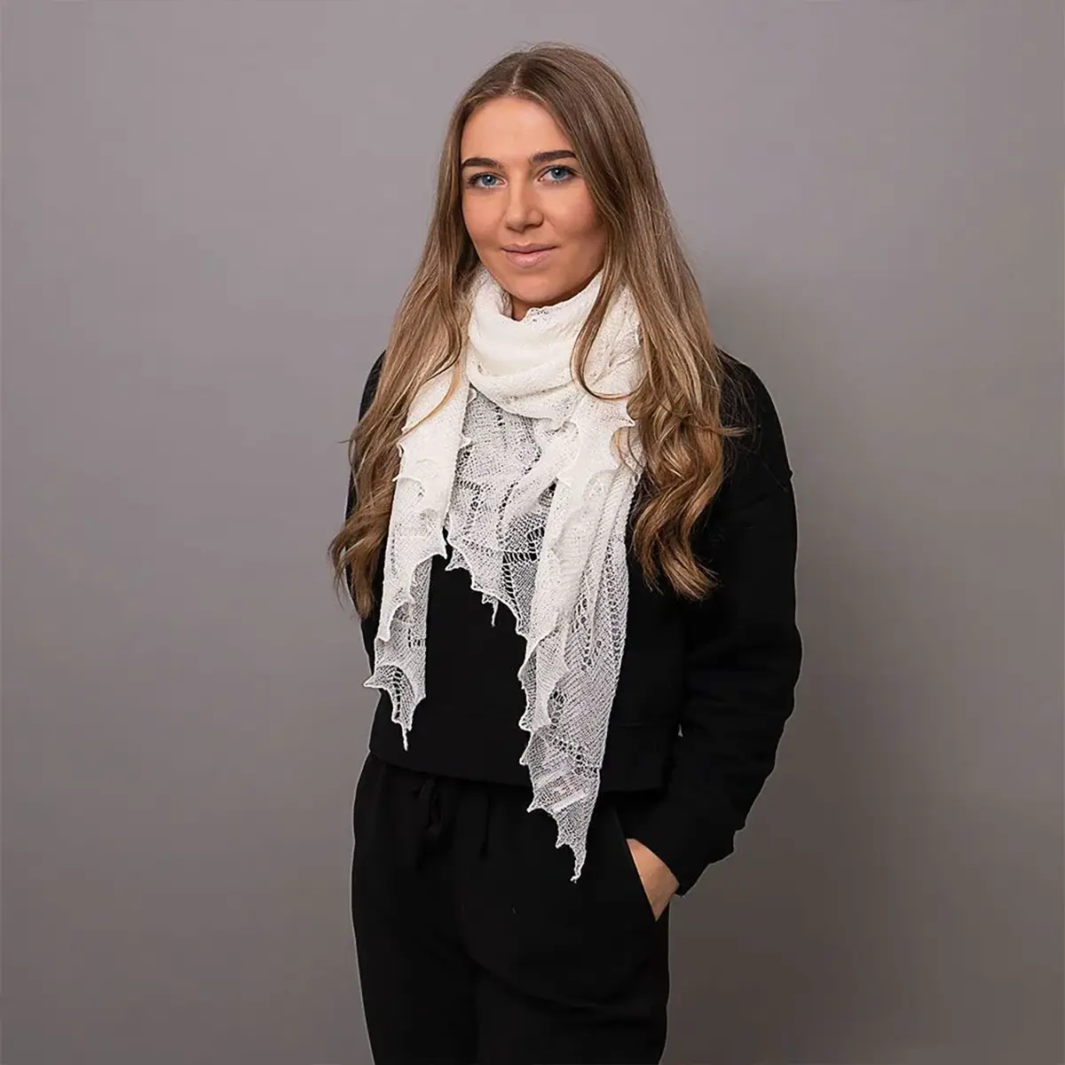 In 1589 Nottingham’s Rev. William Lee invented the world’s first stocking frame, thus transforming the speed of knitting forever. To celebrate over 400 years of handframe knitting we produced this commemorative 100% fine merino wool, ivory white shawl depicting Rev. William Lee in his handframe. Size: 120 x 120cm approx.